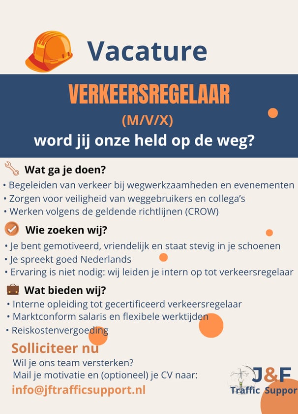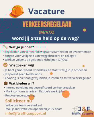 Sluit je aan bij J&F Traffic Support en draag bij aan veiligheid en professionaliteit in verkeer.